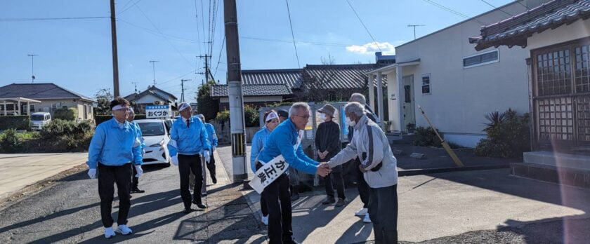 今日は、出陣式から1日かけて、山国から耶馬溪、本耶馬渓、三光、中津と各地区を回ってまいりました。